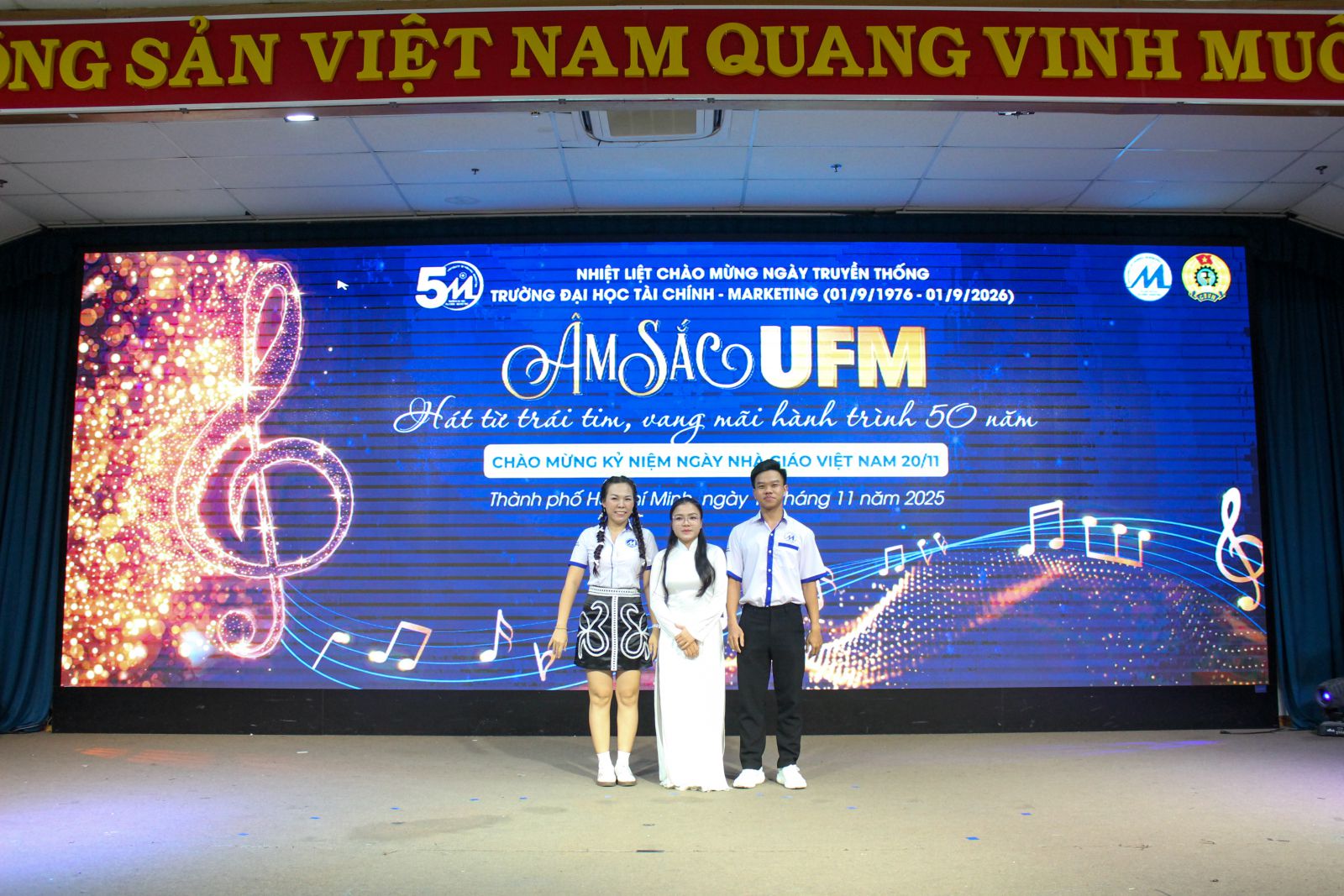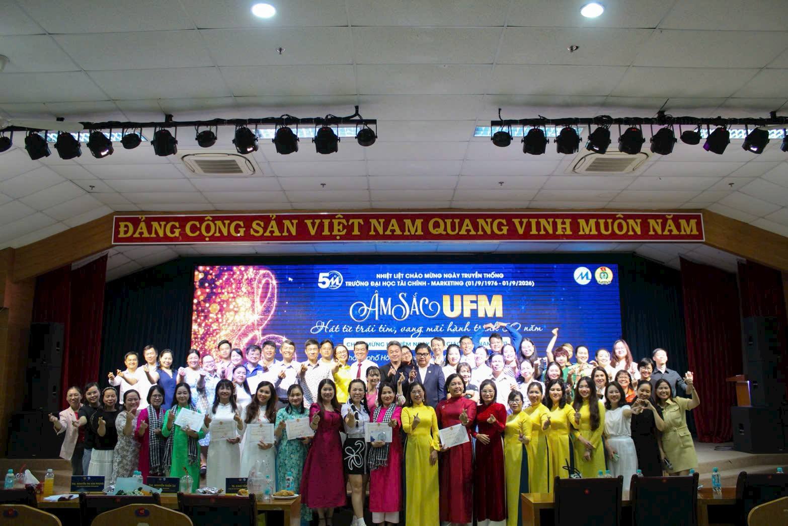Ngày 15.11.2025 - Một ngày thật đẹp khi thầy cô, VC-NLĐ Trường ĐH Tài chính - Marketing cùng hòa giọng trong chương trình “Âm sắc UFM” do Công đoàn Trường tổ chức để Chào mừng 43 năm Ngày Hiến chương Nhà giáo Việt Nam (20.11.1982-20.11.2025) và hướng đến hành trình 50 năm Ngày Truyền thống đầy tự hào của UFM (1.9.1976-1.9.2026).